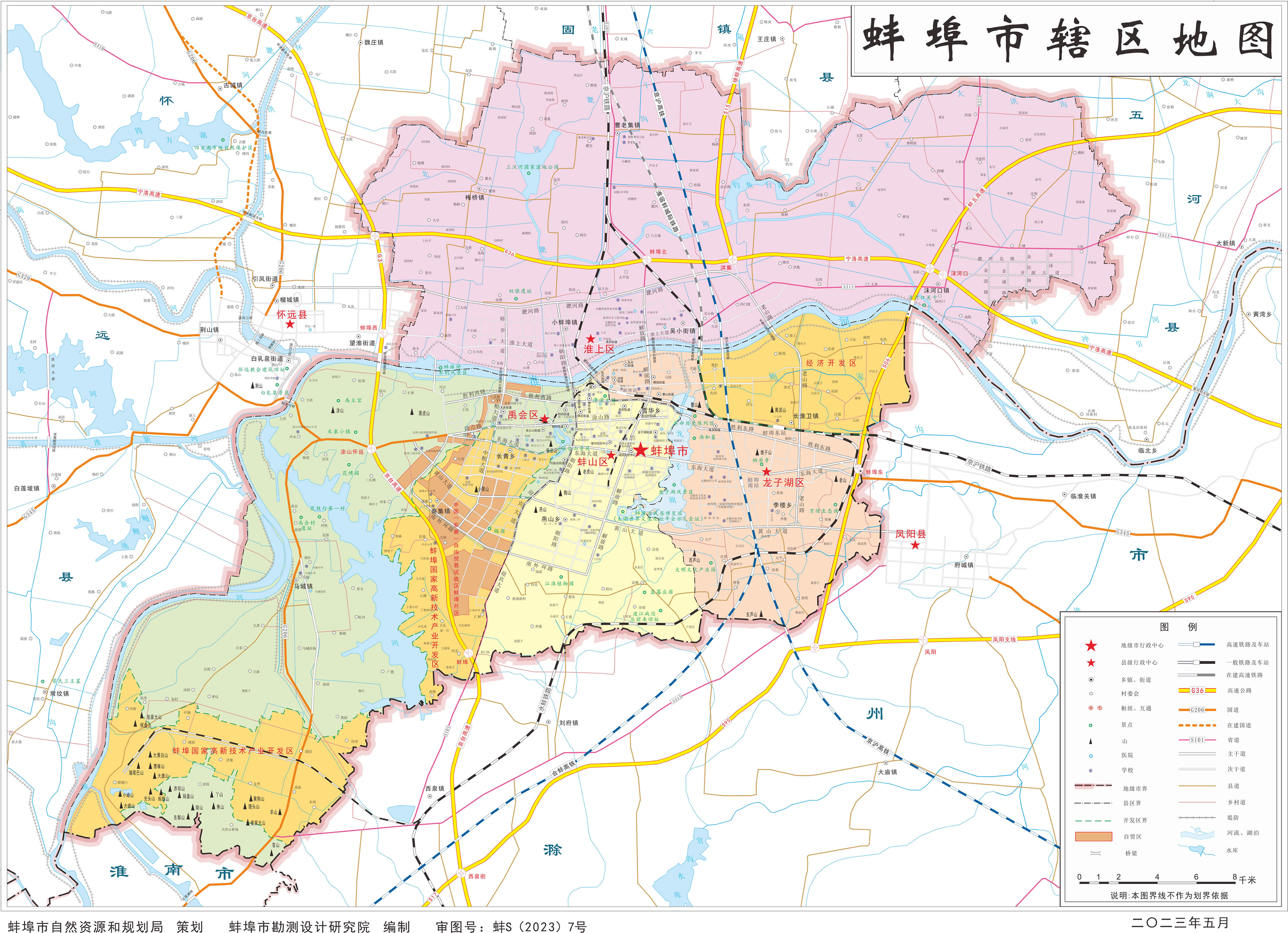 蚌埠市轄4個區(qū)、3個縣: