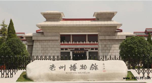 亳州博物館:為仿漢城堡式建筑,是在原三國攬勝宮基礎(chǔ)上改建而成,并于6月18日正式對外免費(fèi)開放。該管建筑面積5200平方米,室內(nèi)陳列面積2800平方米,文物庫房建筑面積1200平方米,館藏文物2071件套,填補(bǔ)了亳州市文化基礎(chǔ)設(shè)施建設(shè)的一項空白,完善了城市服務(wù)功能,提高了城市品位。亳州博物館將成為亳州城市的名片、亳州歷史的底片、亳州文化的芯片。該館陳列的主題:《穿越五千年---亳州文化尋源》,按照歷史發(fā)展的脈絡(luò),展示亳州博大精深的文化魅力和多姿多彩的文物形態(tài)。展覽由序廳、渦河文明、商湯都亳、道源圣地、漢魏風(fēng)骨、天下望州、亳商市井、近代和當(dāng)代亳州8個部分組成,共展出文物700余件套。