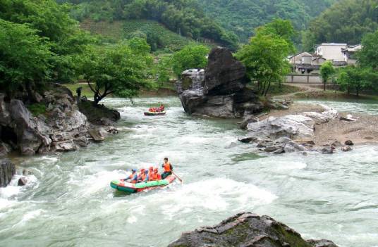 怪潭漂流區(qū)位于秋浦河最上游,是江南最早開發(fā),最長漂程,最具刺激,最大規(guī)模的漂流區(qū)。怪潭景點(diǎn)很具特色,兩岸綠樹成蔭,怪石嶙立;河道曲折蜿蜒,水流喘急,是十分理想的漂流場所,被游客贊譽(yù)為“皖南第一漂”。