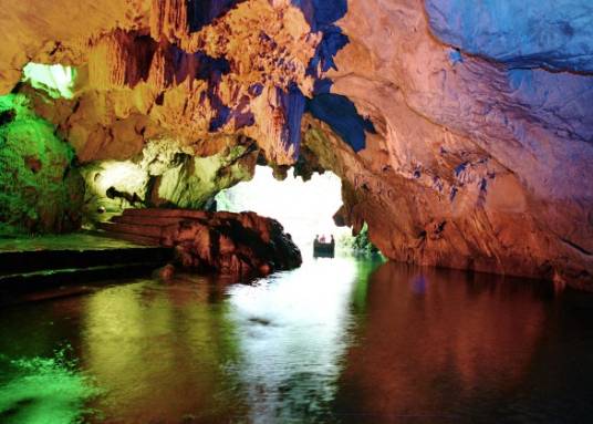 魚龍洞,與太平湖衣袂相連,距舉世聞名的黃山50公里,距佛教勝地九華山25公里,魚龍洞洞口如張開的鱷魚嘴,一泓碧水淙淙而出,終年不涸。該洞全長5000余米,有清澈的地下河貫穿始終,初極窄,復(fù)開闊,氣勢磅礴,宏偉觀,洞內(nèi)奇石紛列,形態(tài)各異,或如蓮花綻放,或如玉樹臨風(fēng),或如眾僧朝圣,或如鐘鼓盤地,極為傳神,有東海、南海、北海、西!八暮!埃吧徎▽m、月宮、慶喜宮、鯉魚宮、玉寢宮、白鱔宮、點(diǎn)將臺、犀牛宮、藏樂宮、天宮、聚寶宮”十一宮“,2014年5月新增了走路進(jìn),坐船出項(xiàng)目,使得游人既可徒步瀏覽,又可乘木舟漫游,奇妙的景色與水聲、波光、燈影交織成一團(tuán),撲朔迷離,意趣橫生。