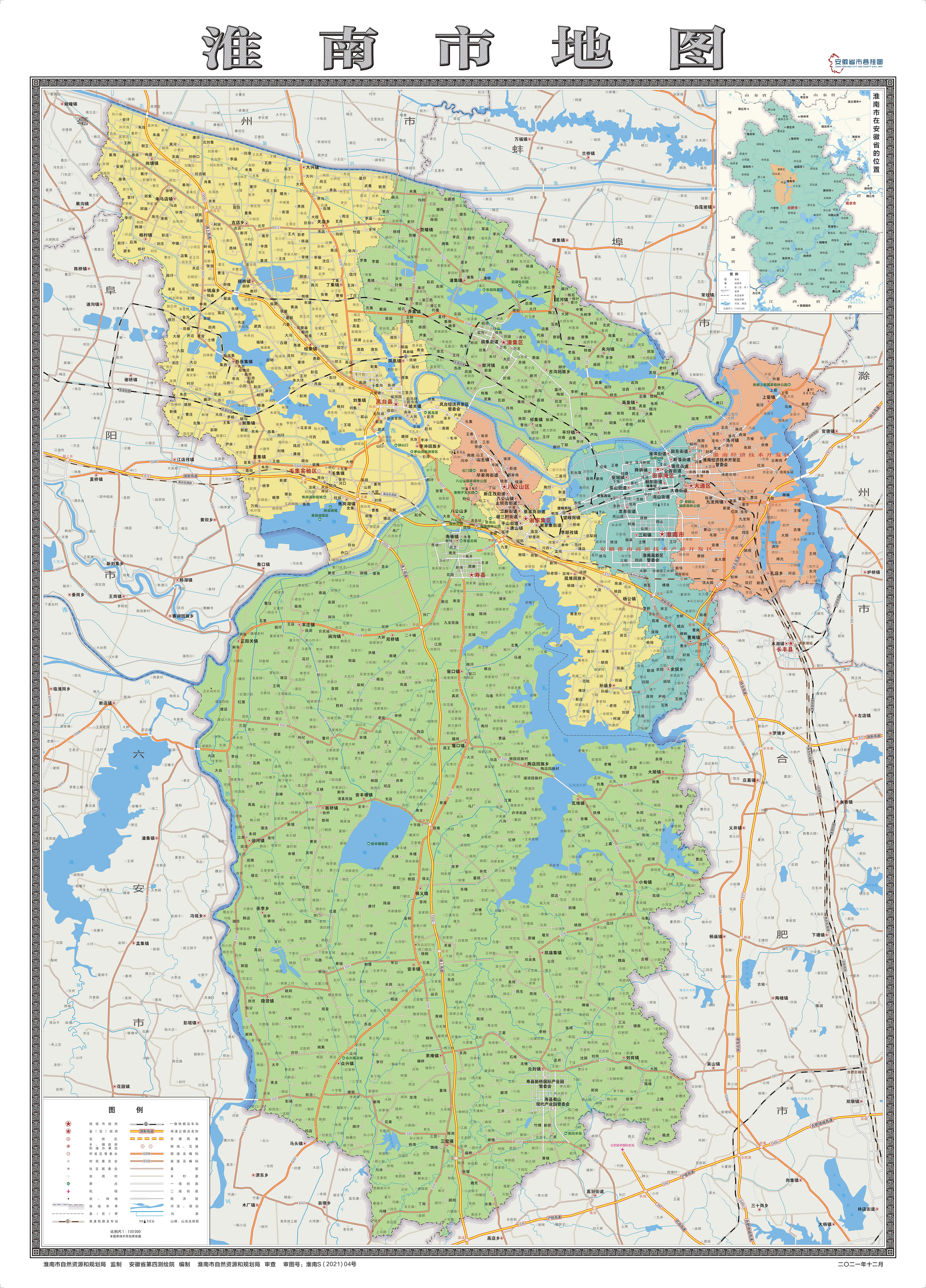 淮南市轄5個(gè)市轄區(qū)、2個(gè)縣: