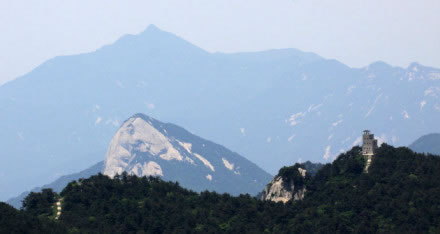 小華山海撥1102m,只有一條寬僅尺余的小道可上,兩側(cè)都是陡峭懸?guī)r,峰脊之上。