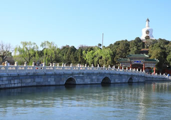 北海公園全園以北海為中心,遼、金、元在此建離宮,明、清辟為帝王御苑,屬于中國(guó)古代皇家園林。