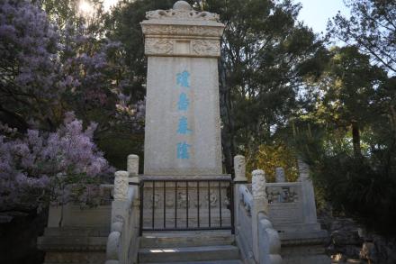 “瓊島春陰”為金代“燕京八景”之一。瓊島春陰碑立于清乾隆十六年(1751年)。碑身正面攜刻乾隆皇帝御書“瓊島春陰”四個(gè)大字,其它三面分別攜刻乾隆題詩(shī)。