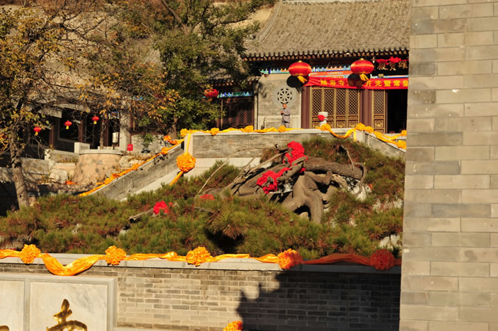 延壽寺 延壽寺,位于昌平區(qū)延壽鎮(zhèn)黑山寨村北兩公里,為三進(jìn)院落寺院,正門為三開間的寺院大門,莊重恢宏進(jìn)入寺院大門,抬眼上望,一座漢白玉筑成的巨大“佛”字迎著朝陽(yáng),矗立在山崗上,在天空映襯下,顯得分外耀眼奪目。菩薩殿是延壽寺的第二重殿,面闊3間,進(jìn)深3間,殿內(nèi)供奉著漢白玉雕刻的釋迦牟尼像和碧玉觀音菩薩像。碧玉觀音菩薩像高1.2米,國(guó)內(nèi)少有,價(jià)值連城。大雄寶殿是延壽寺第三重殿,也是寺內(nèi)的主體建筑,殿內(nèi)供奉三尊佛,被稱作三世佛,使延壽寺成為佛、法、僧三寶俱全的寺院。 |