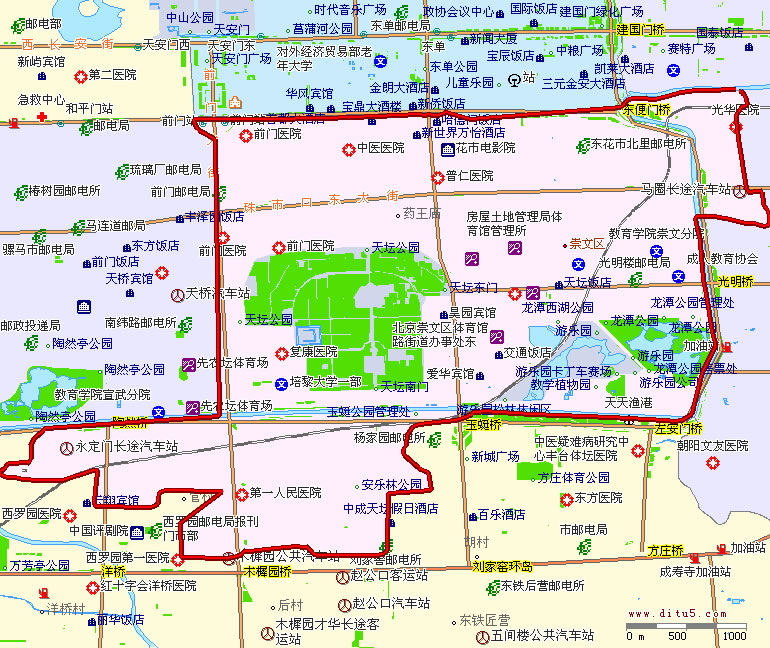 崇文區(qū)是北京市四個(gè)中心城區(qū)之一,坐落在天安門(mén)廣場(chǎng)東南側(cè)。東部與朝陽(yáng)區(qū)搭界,南部與豐臺(tái)區(qū)相交,西部與宣武區(qū)毗鄰,北部與東城區(qū)接壤。平均海拔35米,面積16.46平方公里,轄前門(mén)、崇文門(mén)外、東花市、天壇、體育館路、龍?zhí)、永定門(mén)外7個(gè)街道辦事處,237個(gè)居委會(huì),人口43萬(wàn),是北京市最小的一個(gè)市轄區(qū)。該區(qū)已于2010年7月1日撤銷(xiāo)。
