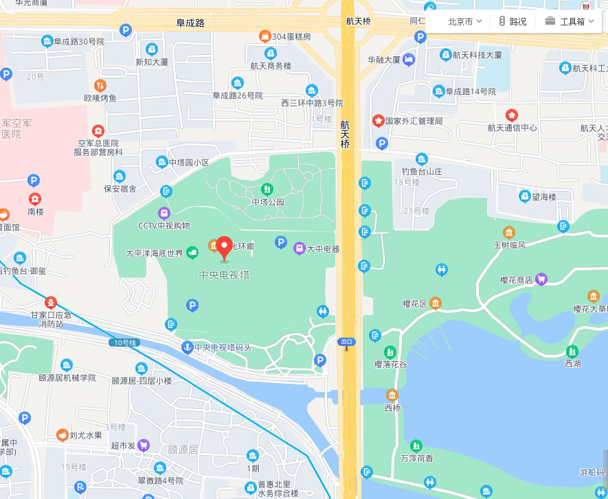 中央廣播電視塔,座落于北京西三環(huán)中路,東臨秀美的玉淵潭和著名的釣魚臺,南靠新建的西客站,北瞰旅游勝地頤和園。占地 15.4公頃,塔高405米。是世界第五高塔,是世界高塔協(xié)會成員塔,是中國廣播電視學會高塔委員會成員塔,是集廣播電視發(fā)射和旅游觀光、餐飲娛樂為一體的綜合性建筑。寬闊的棧橋廣場,漢白玉的退臺環(huán)廊,宮燈形的塔樓,祈年殿式的塔座,讓人流漣忘返。