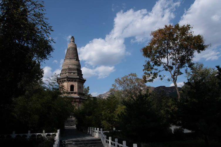 玉皇塔 玉皇塔位于大石窩鎮(zhèn)高莊村北的山坡上。該塔建于遼代,坐北朝南,為八角七級密檐磚塔,通高15米。塔座為八角須彌座式,上面飾有磚雕的人物故事、動物圖案等。塔身正面開券門可以入塔,門內(nèi)曾供奉漢白玉的玉皇大帝像,所以稱玉皇塔。塔身上承七級密檐,各角梁均懸有銅鈴,塔頂八角攢尖,八條頂脊自頂端的封頂鐵制寶珠向八方延伸,盡頭有垂獸、套獸。塔頂置寶珠,上立一根鐵柱塔剎,直插藍天。玉皇塔立于山巔之上,古樸典雅,工藝精湛,是房山古塔中的上品。 1995年10月20日,玉皇塔被北京市人民政府公布為為北第五批市重點文物保護單位。 |