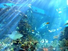 海底環(huán)游——經(jīng)歷環(huán)球海底旅行,探索海洋世界(2011年5月北京海洋館推出了新展區(qū)—“珊瑚花園、水母秘境”)。