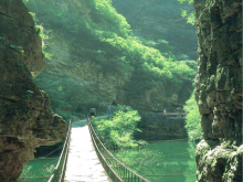 棧道:京東大峽谷以五潭稱奇,然而跨四潭的棧道也稱標新立異,各不相同,成為大峽谷的又一奇觀,一、二棧道依崖而成,似長龍臥坡,四潭棧道由數十根鋼索相連而成,攀崖而上,跨潭而過,似臥頂長虹,走在上面搖搖晃晃,險象橫生,難免不讓人想起紅軍強渡“大渡河”、勇過鐵索橋的壯舉,游客們身臨其境,其感覺自當終生難忘。