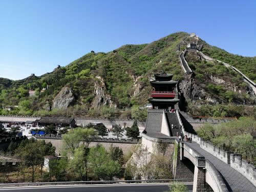 4.軍事防御范圍廣,周圍面積50多公頃,南北券城相距約850米左右,東山頂至西山頂直線距離1150米,防御設施有南、北券城、城樓、水門、水閘、敵樓、鋪房、烽隧、角樓、炮臺等。長城上的敵樓、烽燧、鋪房,是古代打仗時作為掩體和士兵居住的地方,共修復了25座,這些按明代規(guī)制燒的城磚,都是靠人工、牲畜往上運送材料。高大雄偉的城樓,南北各有一座,樓為三重檐歇山式綠琉璃瓦翦邊,高21米,下面城臺高10米。城樓是指揮作戰(zhàn)的中心,所以建造高大。站在樓上,可以一目了然,有利于觀敵情。城臺下面有券門通甕城。甕城即大城門外的月城,用以增強城池的防御力量。