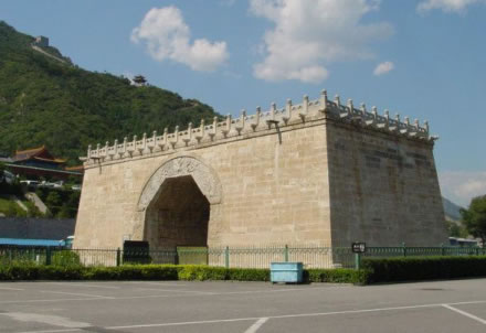 現(xiàn)存的云臺,平面呈長方形,底部東西長近27公尺,南北深17公尺半;頂部東丙長24公尺,南北深近15公尺。臺頂四周安設石護欄和排水龍頭。臺座中間開一券門,寬6公尺余,高7公尺余,為五邊折角尤拱券,可通車馬。券門和券洞上有元代精致的石刻,是研究佛典和古文字的珍貴資料。在距北京市區(qū)50余公里外的昌平區(qū)境內。居庸關得名,始自秦代,相傳秦始皇修筑長城時,將囚犯、士卒和強征來的民夫徙居于此,取"徙居庸徒"之意。漢代沿稱居庸關,三國時代名西關,北齊時改納款關,唐代有居庸關、薊門關、軍都關等名稱。