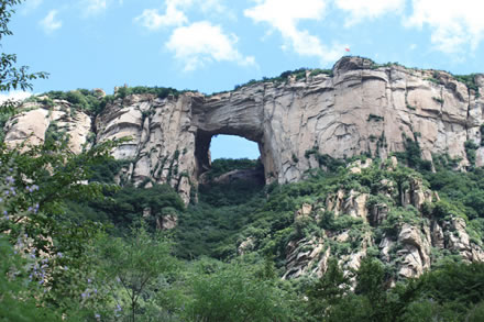 北京天門山風景區(qū)坐落在風景秀麗的北京市密云區(qū)石城鎮(zhèn)柳棵峪,距離北京東直門約80千米。為國家AA級景區(qū)。是以美麗壯觀的花崗巖地貌和獨特的變質(zhì)核雜巖構(gòu)造觀為主結(jié)合溪水潭穴、象形石、原始次生林等景觀的地質(zhì)公園。天門山西壁是國家級花崗巖地質(zhì)景觀,景區(qū)內(nèi)有不同年代崩塌堆積形成的各種花崗巖洞穴、象形石,是一座不可多得的地質(zhì)博物館。