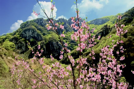 桃源仙谷風景區(qū),位于密云區(qū)石城鎮(zhèn)境內(nèi)。整個景區(qū)可觀賞景點達80余處,山巒連綿,峽谷幽深,森林茂密。湖、瀑、潭、洞遍布景區(qū),四季美景如畫。桃花浪漫時,溯溪而上,宛如置身于桃花源。景區(qū)內(nèi)孝悌教育基地以巖壁為依托,用雕刻的工藝,形象化地宏揚了中國傳統(tǒng)美德。景區(qū)峽谷森林茂密,潭瀑眾多,山峰雄偉,一湖六瀑十三潭,天畫三峰四洞連,近看長城似長龍,遠望云海奇景觀,構(gòu)成了一幅世外桃源的天然風景畫廊。