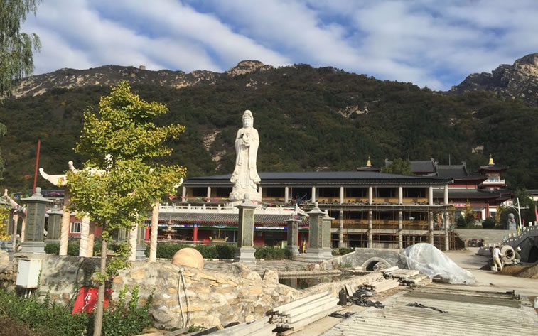 大云峰禪寺 大云峰禪寺位于溪翁莊鎮(zhèn)黑山寺村,寺院始建于唐代,唐代元和年間,憲宗委托高僧選址建寺。游遍北部山川,發(fā)現(xiàn)這處溪水潺潺之地,于是建寺,俗稱“黑山寺”。由于山上荊條繁茂密集曾名“荊林禪寺”,宋代曾重修復(fù)建,改名“云峰禪寺”。清乾隆年間,寺院眾僧橫行鄉(xiāng)里,驚動朝廷,劉宰相利用皇帝口諭的諧音,嚴(yán)厲懲治了惡僧,最后一把火將寺院燒凈,只留下那洞穴遺跡可辨。后曾重建,又毀于清朝民國初年,2003年愛國華僑佛界厚德大行夏荊山長老率佛門道友,開始修復(fù)這千年古剎,并更名“大云峰禪寺”。 大云峰禪寺屬于黑山寺風(fēng)景區(qū),后為五座樓靠山,前有朝山,近有案山。坐北朝南,山門有前廣場,山門內(nèi)建有石橋,過石橋寺廟逐級向上是各寶殿,直至最高處的大雄寶殿。寺院西南處建有水池,分多個個體,錯落有序。