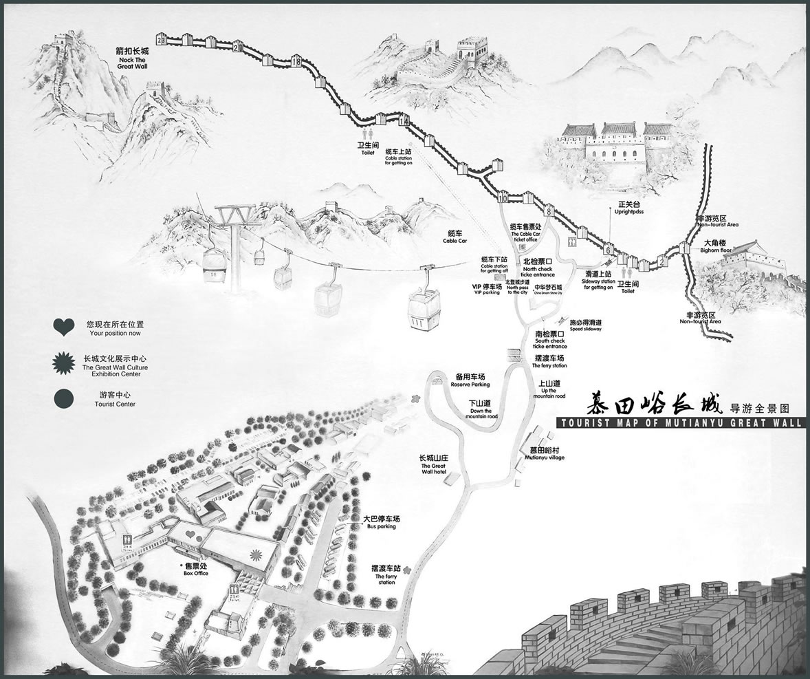 (四)長城擁有雙面垛口——其他段長城,多為長城外側一面建垛口墻,而慕田峪段長城卻兩面都為垛口墻,垛口墻即守城將士對敵作戰(zhàn)的掩體。兩面垛口墻,即意味著兩側同敵作戰(zhàn),可見慕田峪段長城在歷史上的重要戰(zhàn)略地位。