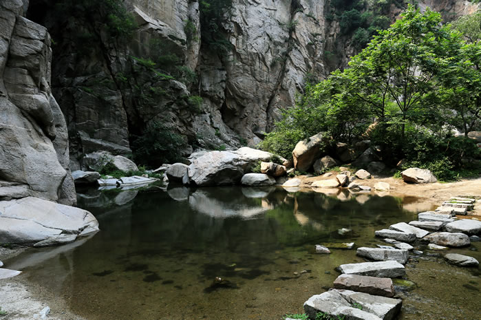 雙秀峰自然風(fēng)景區(qū) 雙秀峰自然風(fēng)景區(qū)位于大莊科鄉(xiāng)大青溝村東,鐵爐村南1.5公里,鄉(xiāng)駐地南7.8公里處。南與昌平接壤,北有鐵爐村,西沙梁村,東有大秦鐵路鐵爐火車(chē)站,西為連綿群山。雙峰并峙,直插云霄,中有一條石縫,故名。海拔672米,整個(gè)山峰大部分為褚紅色粗糙花崗巖,山西北側(cè)有匯泉而成的溪流,是碓石口河(東沙河)發(fā)源地。