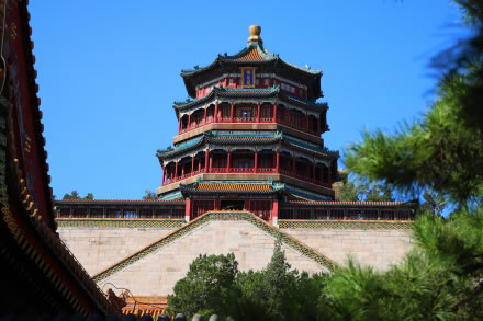 萬壽山后山、后湖古木成林,有藏式寺廟,蘇州河古買賣街。后湖東端有仿無錫寄暢園而建的諧趣園,小巧玲瓏,被稱為“園中之園”。