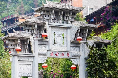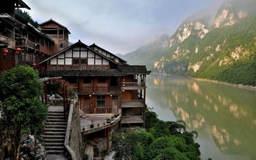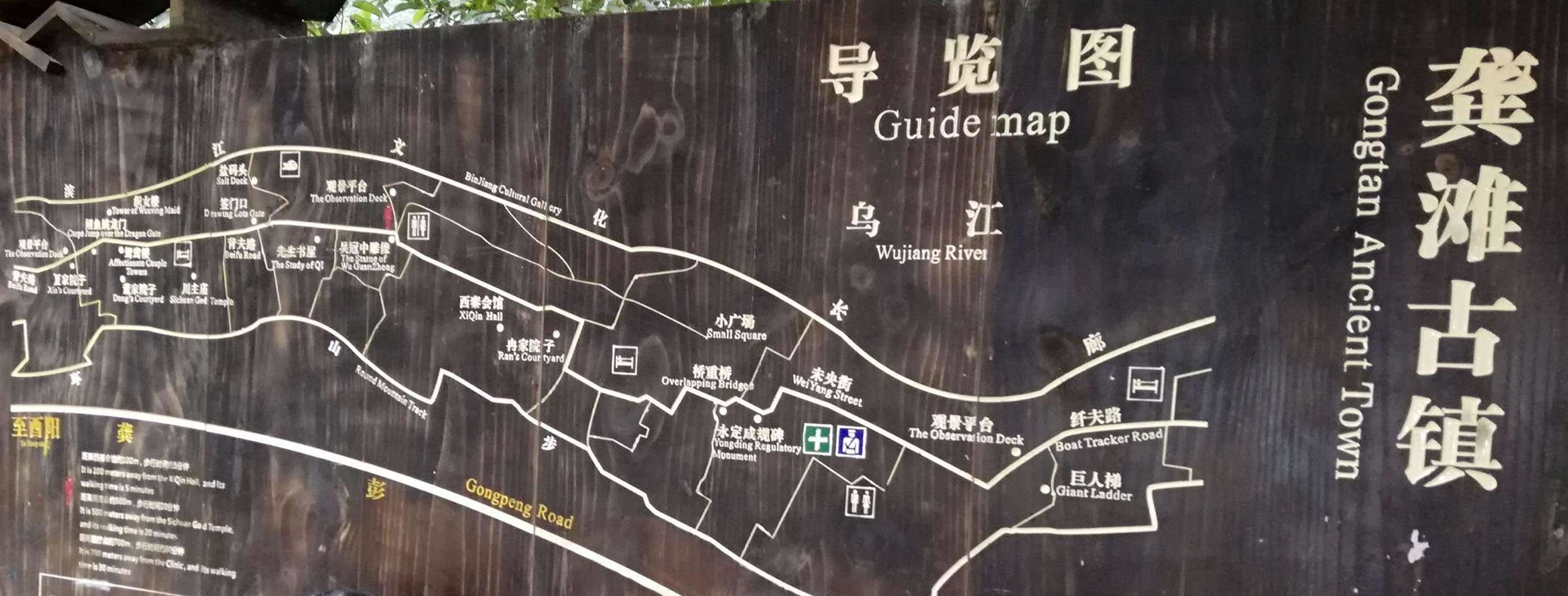 龔灘古鎮(zhèn)源自蜀漢,建置于唐,距今1800年的歷史。古鎮(zhèn)街道歷代修葺,至2005年總長約3千米,皆以石板街、吊腳樓、坡屋面、小青瓦為風(fēng)貌特征。其中老街長1.5千米,存寺廟、祠堂、古碼頭、古纖道、古梯道、古橋梁、古牌坊、古樹、古井、古碑石等。青石板街將古鎮(zhèn)按照不同的歷史背景、民族文化以商業(yè)業(yè)態(tài)形式布局為五段,以榨油、織布為特色的“油坊路”,以背夫腳夫文化為主題的“背夫路”,以西秦會(huì)館為代表建筑的“西秦路”,展示纖夫文化的“纖夫路”,以鹽商鹽號為特色的“老鹽路”。有50余堵別具一格的封火墻、200多個(gè)古樸幽靜的四合院、50多座形態(tài)各異的吊腳樓,獨(dú)具地方特色,是中國國內(nèi)保存完好且頗具規(guī)模的明清建筑群。