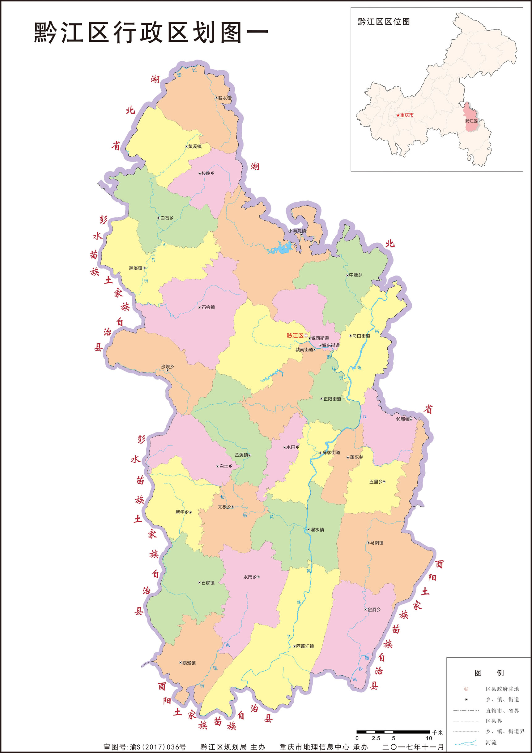 黔江區(qū)轄6個街道、18個鎮(zhèn)、6個鄉(xiāng):