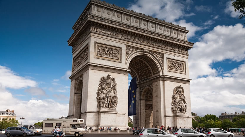 巴黎凱旋門 凱旋門(法語:L'Arc de Triomphe),位于法蘭西共和國首都巴黎市中心城區(qū)香榭麗舍大街,地處巴黎戴高樂星形廣場中央,是為頌揚(yáng)奧斯特里茨戰(zhàn)役勝利,由法蘭西第一帝國皇帝拿破侖主持修建的一座紀(jì)念性建筑,是法國國家象征之一、法國四大代表建筑之一、巴黎市地標(biāo)紀(jì)念碑。 凱旋門正如其名,是一座迎接外出征戰(zhàn)的軍隊(duì)凱旋的大門。它是現(xiàn)今世界上最大的一座圓拱門,位于巴黎市中心戴高樂廣場中央的環(huán)島上面。這座廣場也是配合雄獅凱旋門而修建的,因?yàn)閯P旋門建成后,給交通帶來了不便,于是就在19世紀(jì)中葉,環(huán)繞凱旋門一周修建了一個圓形廣場及12條道路,每條道路都有40~80米寬,呈放射狀,就像明星發(fā)出的燦爛光芒,因此這個廣場又叫明星廣場。凱旋門也稱為“星門”。