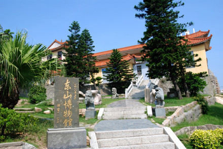 東山博物館,1988年6月開館,1995年3月建成三層樓新館,建筑面積986平方米,占地1400多平方米,館內(nèi)設(shè)有“文物室”、“閩臺(tái)史前文化關(guān)系陳列室”、“陳洪甄書畫室”、“東山建縣八十周年建設(shè)成就回顧展“等展室。展出舊石器時(shí)代、新石器時(shí)代以及歷代文物、圖片、拓片等700多件。其中有東山人“化石”,萬(wàn)年前舊石器、各種動(dòng)物(鹿、熊、象、犀牛、羊)化石,還有石器、銅器、陶瓷器、玉器、木雕、古今兵器、書畫、民俗文物及一艘從臺(tái)灣飄來(lái)的臺(tái)灣高山族獨(dú)木舟等。