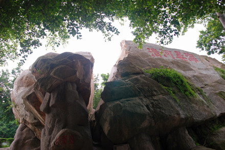 釣鰲臺(tái)位于東山縣風(fēng)動(dòng)石右前側(cè)黃道周紀(jì)念館旁,為一巨大石巖坐山而起,狀如船臺(tái)。相傳南宋末年,宋室少帝避元南逃筑“東京”于東山時(shí),一真人坐法于此,忽然間山崩海嘯,“東京”城沉陷入海,真人急念真經(jīng)一腳蹬石升天而遁,故留下一處“仙腳印”。后人作“銅山十八景”詩(shī),稱其為“仙腳獨(dú)步騰云漢”。其巖壁東面有民國(guó)二十四年湖南漢壽朱熙題鐫:“海晏河清”;下有一口“龍泉”。 釣鰲臺(tái)臨海高峙,明時(shí)銅山三大書院(崇文書院、東璧書院、南溟書院)筑于周圍,文人士子常登其上,望海騁懷,擊石而歌,以期金榜題名,獨(dú)占鰲頭,遂有前人孫堯天鐫“釣鰲臺(tái)”于石。