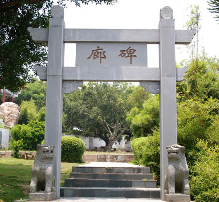 東山碑廊位于東山風(fēng)動(dòng)石、關(guān)帝廟與古城墻之間的一片坡地。碑墻每隔一段鑿開或方或圓的門洞,兩面墻腳均以青石板鋪就平整光滑的廊道,可雙面觀賞古碑,又顯空靈開朗。墻頭仿懸山屋頂式樣,飾以碧綠琉璃瓦,在太陽(yáng)底下,流光溢彩。碑墻的延伸,或挺然獨(dú)立,或依傍大石,或緊貼巖壁,在那片坡地上圈出一個(gè)近似方形的園子。碑廊的古碑,有告示、紀(jì)念、頌德、標(biāo)志、民約、重要?dú)v史人物墓志、墓碑等,內(nèi)容涉及明清時(shí)期東山的政治、經(jīng)濟(jì)、軍事、文化、民俗等諸多方面。它們富有歷史、藝術(shù)價(jià)值和十分重要的證史、補(bǔ)史與借鑒的作用。