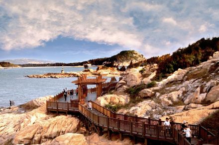 濱海木棧道是風(fēng)動(dòng)石景區(qū)近年來(lái)投入開發(fā)的臨海棧道,供游人近距離感觸海洋魅力,欣賞海蝕景觀。