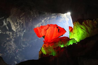 自藏禾洞沿石階而上,便到了雷公洞。洞內(nèi)石筍和石鐘乳十分發(fā)達(dá),因巖石含有碳酸鈣、鐵質(zhì)、方解石、石英等成分,整個(gè)洞廳色彩斑斕。洞底暗河水聲隆隆,猶如雷鳴,故而得名。傳說(shuō)天上雷神每年都要下來(lái)巡洞一次,在這里休息。