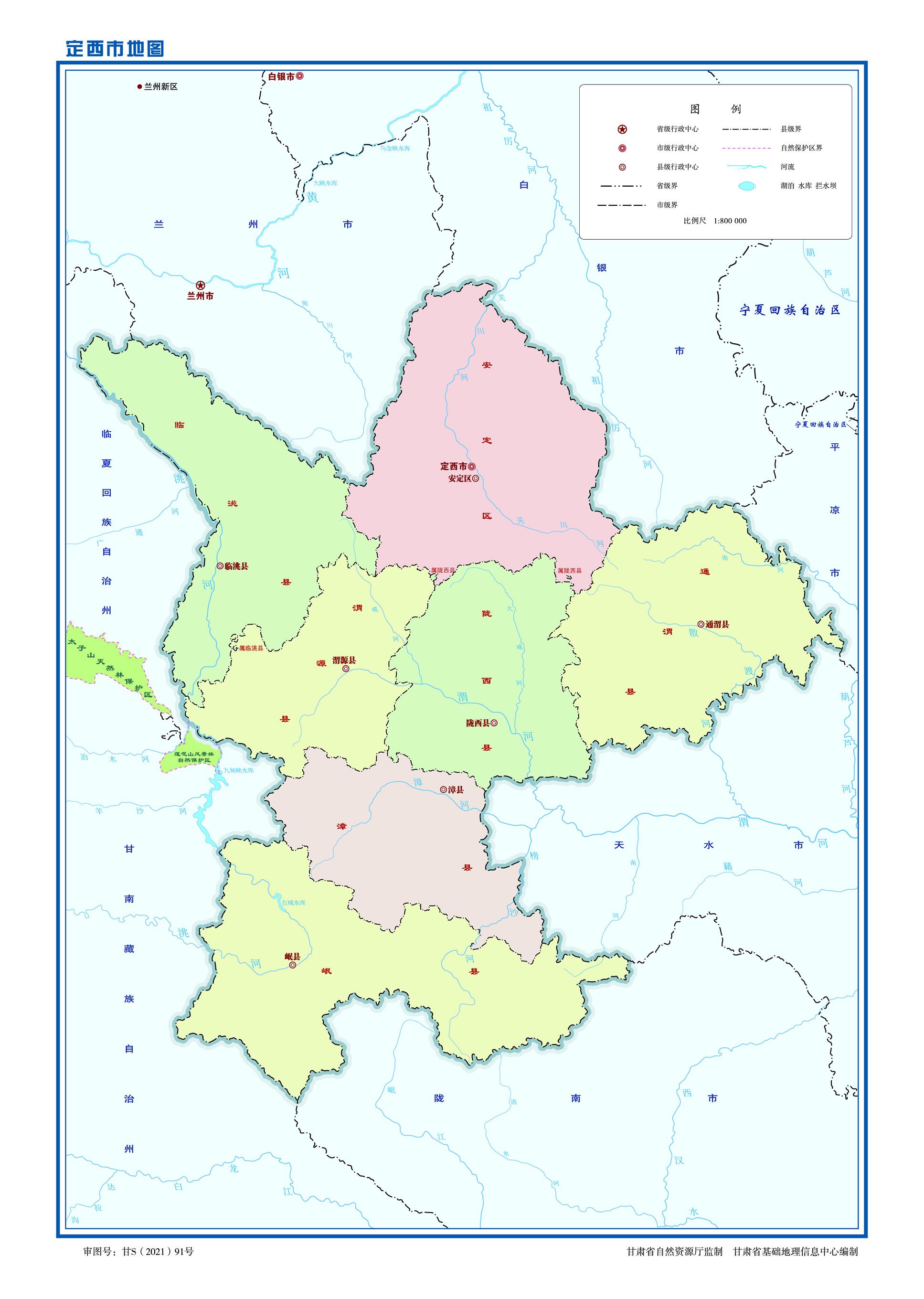 2003年4月4日,撤銷定西地區(qū),設(shè)立地級定西市,定西市轄原定西地區(qū)通渭縣、隴西縣、渭源縣、臨洮縣、漳縣、岷縣和新設(shè)立的安定區(qū)。