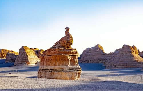 公園內(nèi)約有五千多個(gè)大大小小的雅丹體,在長(zhǎng)短、高低、走向和外形上等有很大差異。