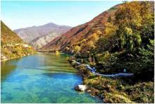 官鵝溝山俊。群山錯落,綠水環(huán)繞,古樹差天,氣象萬千,秀麗處山體你拉我牽,婀娜多姿;雄偉處絕壁懸崖直插云霄,氣勢恢宏,蔚為壯觀,處處都是山水畫。 官鵝溝奇險。在湖泊和雪山之間,9道險峻深幽的峽谷讓人驚嘆不已。在長數(shù)百米、高數(shù)百米、寬僅十米的各種形態(tài)峽谷中,河水震耳欲聾,涼風撲面而來,懸崖古松掩日,瀑布飛瀉直下,游人至此,膽小者害怕至極,有身處絕境之感,如此鬼斧神工的自然奇觀,實屬國內(nèi)之罕見。一詩人欣然賦詩: 攬勝偏憐日月長,鵝溝炎夏水風涼。奇峰疊翠通幽谷,雪浪噴珠瀉石梁。 萬木欣榮青帶玉,重崖森迥瀑飛先,綠蔭滿抱姿游興,珠粉巖邊野卉香。