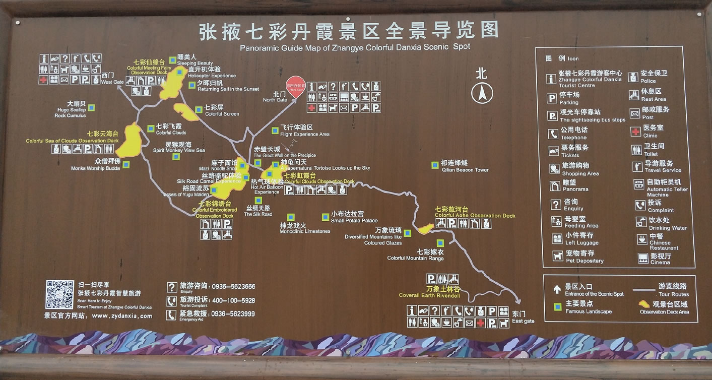 七彩丹霞景區(qū)內(nèi)有七彩云海、七彩仙緣、七彩錦繡、七彩虹霞、最佳攝影點(diǎn)、七彩熬河臺(tái)、萬象土林谷等7處觀景臺(tái)。登臨攬勝,薄層狀泥巖、砂質(zhì)泥巖及頁(yè)巖互層交錯(cuò),紫紅色、灰綠色、黃綠色、灰黑色等色彩交相輝映,組合有序,極富有韻律感和層次感。神龍戲火、靈猴觀海、眾僧拜佛、大扇貝、七彩屏、睡美人等景點(diǎn)。七彩丹霞景區(qū)集自然和獨(dú)特的人文景觀于一體,體現(xiàn)了西部特有的粗獷雄奇,瑰麗險(xiǎn)絕,氣象萬千。