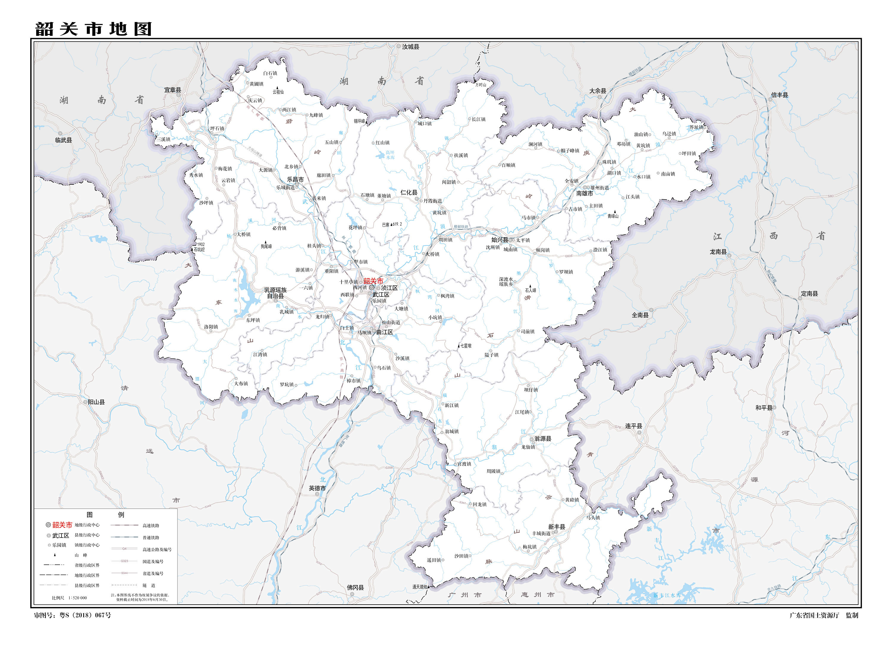 韶關(guān)市位于廣東省北部,北界湖南省,東鄰江西省,東南面、南面和西面分別與廣東省河源市、惠州市、廣州市及清遠(yuǎn)市接壤。東起南雄市界址鎮(zhèn)界址村,西至樂昌市三溪鎮(zhèn)丫告嶺村,北自樂昌市白石鎮(zhèn)三界圩村,南至新豐縣馬頭鎮(zhèn)路下村。全市總面積1.84萬平方千米,居廣東省第二位,市區(qū)面積2870.66平方千米。