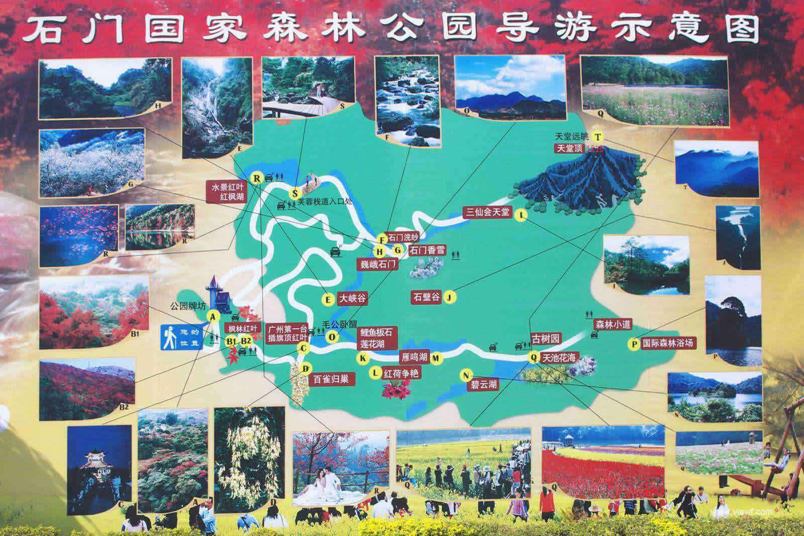 石門國家森林公園設(shè)田園風(fēng)光區(qū)、石門風(fēng)景區(qū)、石灶風(fēng)景區(qū)、天堂頂風(fēng)景區(qū)、峽谷探險區(qū)等5個風(fēng)景區(qū),計有巍峨石門、相思古榕、石門香雪、三仙會天堂、石灶天池、石灶浮煙、彩霞繽紛、鯉魚板石、仙人推磨、神谷梵音、虎神古廟、古炮樓、偉人臥像等50多個景點景觀。