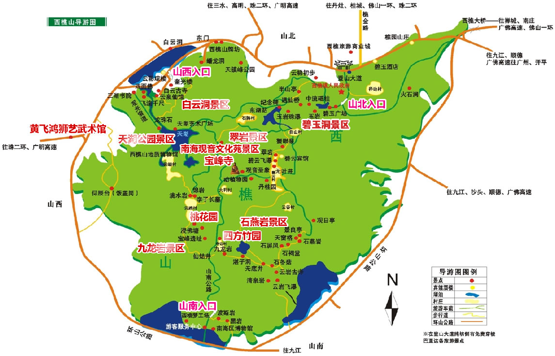 西樵山是一座沉寂了億萬年的死火山,自然風(fēng)光美不勝收,山上有72奇峰和36奇洞及大大小小的湖泊、泉瀑和深潭;由于西樵山林深苔厚,儲(chǔ)存了極為豐富的水資源,因而被稱為“固體水庫(kù)”。整個(gè)包括石燕巖、 作為“珠江文明燈塔”的西樵山有著6000多年的文明史,古西樵山人創(chuàng)造了燦爛的“雙肩石器”文明;到明清期間,有大批的文人學(xué)子曾隱居在這里,使西樵山獲得了“南粵理學(xué)名山”的雅號(hào);西樵山還是“南拳文化”的發(fā)源地,一代宗師黃飛鴻就出生在這里;西樵山民風(fēng)淳樸、古韻猶存,到這里來旅游,還能觀賞到山里百姓的婚嫁、生產(chǎn)習(xí)俗以及各種民間游藝活動(dòng)。
