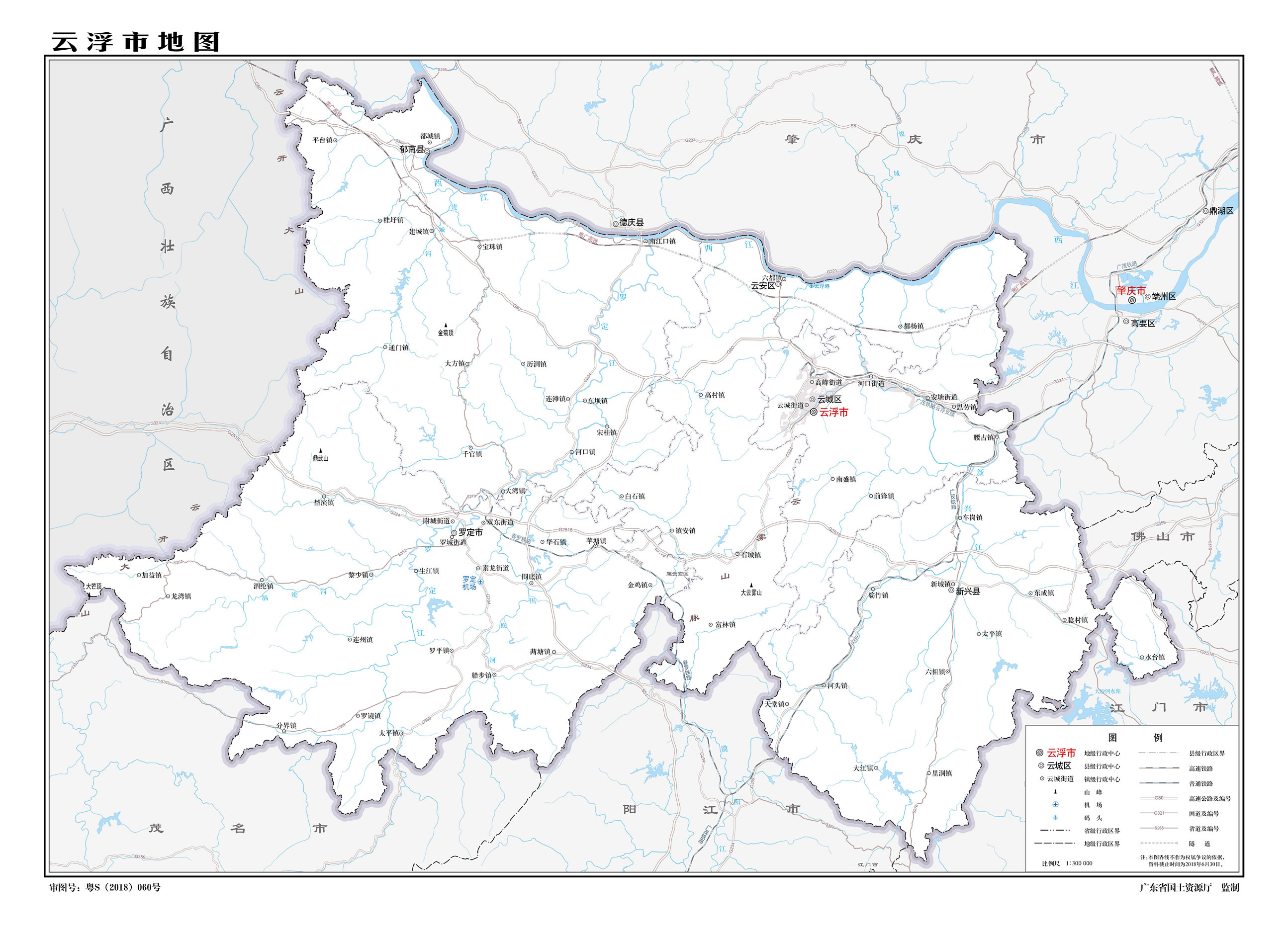云浮市轄2個區(qū)、2個縣、代管1個縣級市: