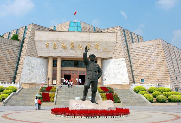 百色起義紀念園位于百色城東面的后龍山、盤龍山、迎龍山上,是在整合百色起義紀念館、紅七軍軍部舊址、紅七軍政治部舊址、百色起義紀念碑、右江民族博物館、紅軍橋、銅鼓樓、南閣亭、兩廣青年友誼園等革命歷史文化資源的基礎(chǔ)上形成的主題性公園,成立于2008年5月,是中央確定的全國12個紅色旅游重點景區(qū)之一“兩江紅旗,百色風(fēng)雷”景區(qū)的核心區(qū)。
