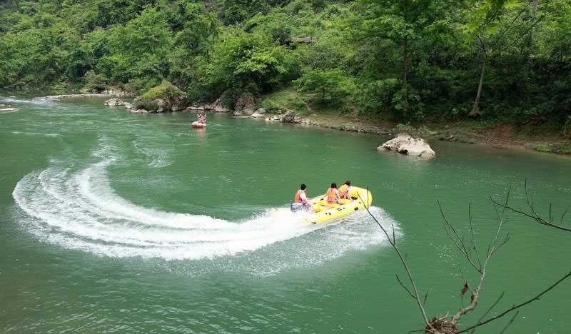 布柳河仙人橋景區(qū),地處樂業(yè)縣新化鎮(zhèn)磨里村布柳河大峽谷,距縣城51公里,該峽谷全長16.9公里。沿河兩岸綠樹成蔭,有“植物的王國,鳥類的天堂”之美稱,河里魚兒穿梭,既可漂流,又可觀光旅游。布柳河上還有一座由三座大山塌陷形成的天然石拱橋,坐落于漂流河段下游,當(dāng)?shù)厝朔Q為“仙人橋”。仙人橋拱孔跨度177.14米,橋?qū)?9.3米,橋身長280米,橋身厚78米,總橋高165米,拱高87米。