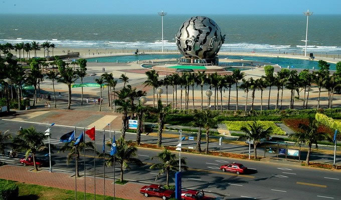 海灘公園,是銀灘國(guó)家旅游假區(qū)的重要組成部分,位于北海市中心以南十公里的北海銀灘中部。公園由三部份組成,東區(qū)設(shè)有琴、棋、書、畫院.中間是海灘、海上活動(dòng)區(qū);西區(qū)是海洋生物館、兒童戲水池、大型露天舞池等組成的游樂區(qū),可同時(shí)容納游客6萬多人。 [21]鋼塑“潮”位于銀灘旅游度假區(qū)的海灘公園內(nèi),它是由地道的北海人、中央美術(shù)學(xué)院副教授魏小明設(shè)計(jì),由中房北海公司投資一千多萬元,用兩個(gè)月零15天建成。整座雕塑以象征一顆大明珠的球體和七位裸體少女護(hù)衛(wèi)球?yàn)橹黧w,并由安裝有5200個(gè)噴頭的音樂噴泉組成。雕塑高23米,鋼球直徑20米。巨大的鋼球是用不銹鋼鏤空制成。整座建筑以大海、珍珠、潮水為背影。