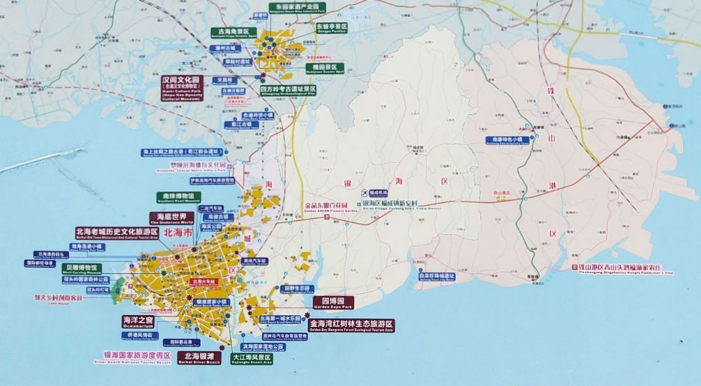 北海銀灘國(guó)家度假區(qū)周圍的交通也十分便利,到飛機(jī)場(chǎng)35公里 ,到火車站10公里 ,到汽車站11公里 ,到國(guó)際海運(yùn)碼頭 3公里 ,到深水碼頭18公里 ,到客運(yùn)碼頭13公里。