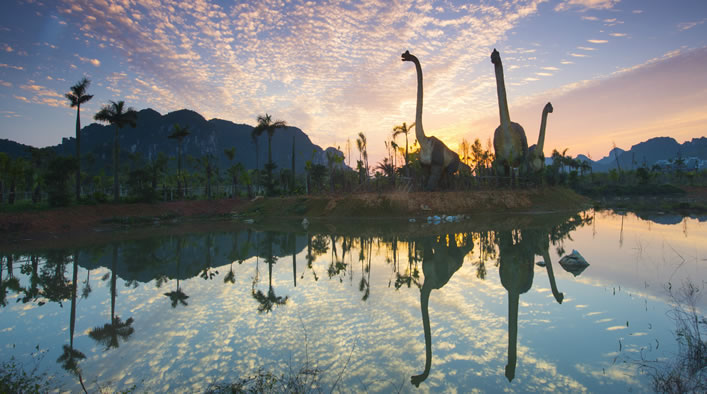 龍谷灣恐龍主題公園是國(guó)家AAAA級(jí)旅游景區(qū),位于扶綏縣上龍大道999號(hào),距南友高速公路扶綏出口3公里。占地面積3000畝,是龍谷灣旅游休閑度假區(qū)的一期工程,于2017年元旦建成開(kāi)業(yè)。公園由遠(yuǎn)古呼喚、多媒體體驗(yàn)中心、動(dòng)感地帶、兒童王國(guó)、恐龍谷等板塊組成,是集科普研學(xué)、旅游觀(guān)光、游樂(lè)體驗(yàn)為一體的亞洲最大的恐龍主題公園。龍谷灣旅游休閑度假區(qū)瞄準(zhǔn)“3.5小時(shí)經(jīng)濟(jì)圈”休閑度假市場(chǎng),突出恐龍文化和壯族民俗文化,規(guī)劃建設(shè)主題公園、特色小鎮(zhèn)、商業(yè)綜合體、田園綜合體、康養(yǎng)旅居城、體育旅游、智慧旅游、國(guó)際教育、民宿、汽車(chē)旅游營(yíng)地等,形成龍谷灣恐龍公園、國(guó)際慢生活商業(yè)中心、錦繡八桂田園綜合體、國(guó)際酷玩休閑世界、國(guó)際共享康養(yǎng)旅居城五大區(qū)域。
