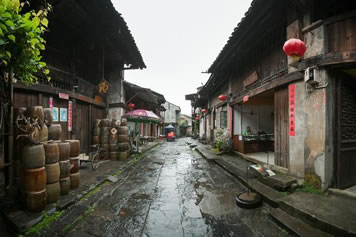 古鎮(zhèn)所有的房屋都是磚木結(jié)構(gòu),房門是一排木板,早晨把木板拿掉,家里的一切是透明的;到了晚上,再把木板裝上,就與外界隔絕了。這些房屋,每棟都有數(shù)百年的歷史。走在石板鋪成的街道上,房前有“咕嚕!蔽疅煹睦先艘约芭吭诶先四_邊打瞌睡的黃狗;肩上站著兩只魚鷹的漁夫穿著草鞋,從你身邊走過,去江邊捕魚;有相鄰的婦女在拉家常,時間仿佛在這里放慢行進(jìn)的腳步,生活顯得非常平靜,然而卻很溫馨。