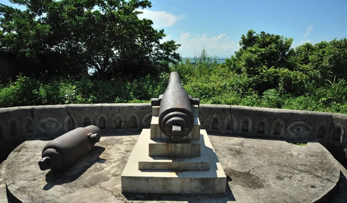 白龍古炮臺位于防城區(qū)江山鄉(xiāng)白龍尾半島南端,由“白龍臺”、“銀坑臺”、“龍珍臺”和“龍驤臺”四座炮臺組成,是清代炮臺。清政府為鞏固海防,清光緒十三年(1887年)由張之洞親自率部到東興、竹山、江平、白龍尾勘察選址,決定在白龍尾修建炮臺,由?跔I管帶陳良杰督建,清光緒二十年(1895年)修成。扼北部灣水道入防城、東興咽喉,守護防城江口、北倫河口,與企沙鎮(zhèn)的石龜頭炮臺互為犄角,俗稱“龜蛇守水口”,和位于縣城西部邊境沿線咽喉的那梭炮臺一起,組成了一個較為完整的沿海防御體系。2006年5月,納入連城要塞遺址和友誼關,公布為國家級文物保護單位。