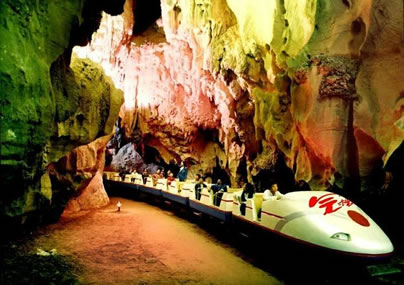 冠巖地下河游覽區(qū)是桂林有名的旅游溶洞之一,本世紀九十年代初,桂林華之冠旅游開發(fā)有限公司對冠巖進行了全方位科學(xué)合理性的開發(fā),按高起點、高標(biāo)準(zhǔn)設(shè)計建立了多種游覽方式,洞內(nèi)共有5種游覽方式:步行(行程約1000米);乘坐觀光滑道(洞內(nèi)滑道來回約500米);乘觀光電梯(電梯高約36米,亞洲觀光第一梯),乘坐洞內(nèi)小火車(小火車長約30米,可載客108人,行程約500米);在地下河浮橋中漫步(行程約500米,洞中有世界巖洞第一瀑,地下河瀑布)。多種現(xiàn)代游覽設(shè)施與洞內(nèi)景色相輔相成,使冠巖成為國內(nèi)獨具特色和韻味的水陸空游覽洞穴。