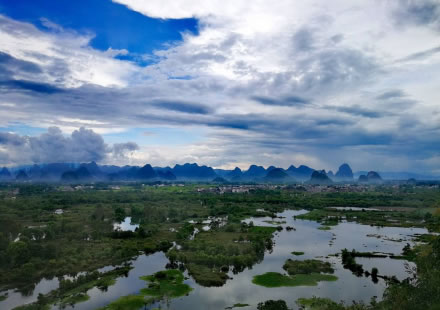 桂林市地處南嶺山系的西南部,平均海拔150米,屬典型的“喀斯特”巖溶地貌,遍布全市的石灰?guī)r經(jīng)億萬年的風(fēng)化浸蝕,形成了千峰環(huán)立、一水抱城、洞奇石美的獨特景觀,被世人美譽為“桂林山水甲天下”。其中最具有代表性的景點有:象鼻山、伏波山、南溪山、堯山、獨秀峰、七星巖、蘆笛巖、甑皮巖、冠巖、明代王城、榕湖、杉湖等。而我們所說的漓江山水最精彩的一段則在陽朔境內(nèi),桂林其他縣區(qū)也有數(shù)不勝數(shù)的美景等著我們前去瀏覽,龍脊梯田、興安靈渠、資江漂流、五排河漂流、八角寨、寶鼎瀑布等都會為你帶來更多的驚喜。
