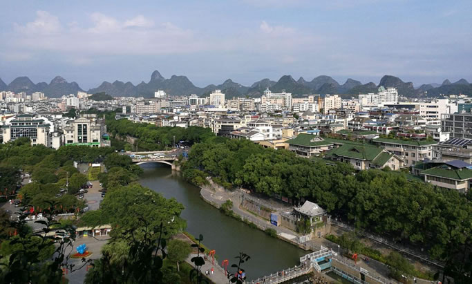 水文 象山區(qū)主要有漓江、桃花江、相思江、寧遠(yuǎn)河、南溪,以及杉湖,是桂林市“兩江四湖”環(huán)城水系工程、大型旅游景區(qū)重要組成部分。此外,在溶蝕、沖積平原中還分布著一些大小不一的河流、湖泊,如由萬福潭沿上月山、佛殿村流入相思江的佛殿河,由芬塘村經(jīng)桂林市園藝場(chǎng)流入相思江的牛過河等。