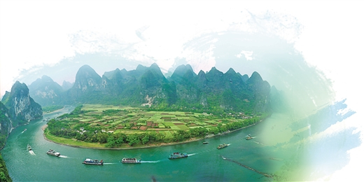 漓江燕山段在雁山區(qū)域內(nèi)有21千米航線,從凈瓶山起,經(jīng)靈川縣大圩古鎮(zhèn),至草坪冠巖景區(qū)。