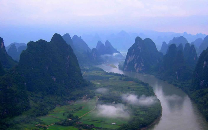 龍脊梯田,因山脈如龍的背脊而得名,是廣西著名風景區(qū),始建于元朝,有近700年的歷史。龍脊梯田景區(qū)主要分為平安壯寨梯田和金坑紅瑤梯田。平安壯寨梯田有“七星伴月”和“九龍五虎”兩大著名景觀;金坑紅瑤梯田有“大界千層天梯”,“西山韶樂”和“金佛頂”三大著名景觀。這里的壯、瑤民族世世代代居住在青瓦木樓之中,淳樸善良。金竹壯寨被聯(lián)合國教科文組織稱為北壯的楷模;黃洛紅瑤寨獲上海大世界吉尼斯集體長發(fā)村之最;龍脊古壯寨至今保留著許多文物古跡。